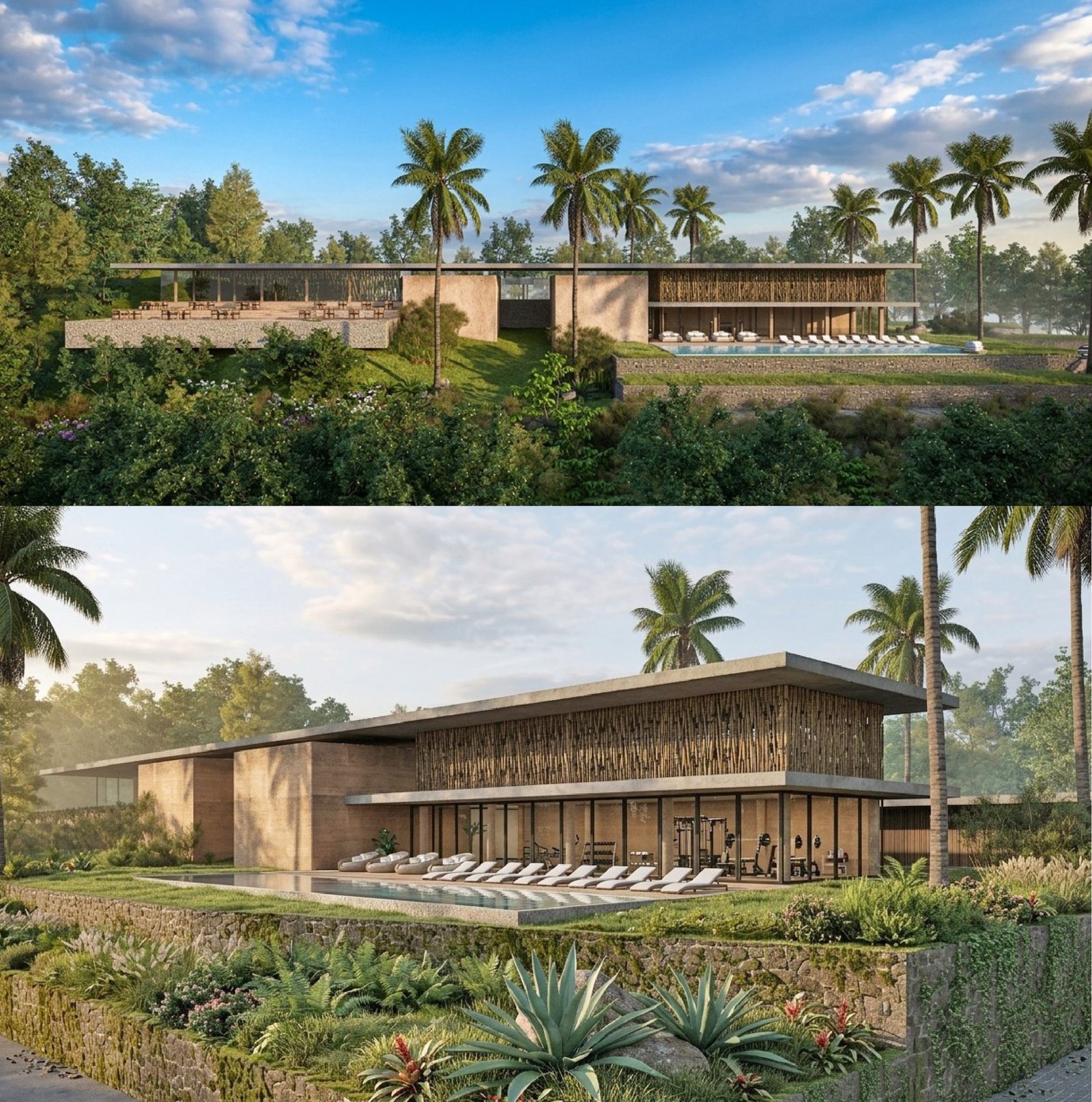 The development combines private villas, hospitality spaces, and community areas designed around sustainability, nature, and modern remote-working lifestyles.